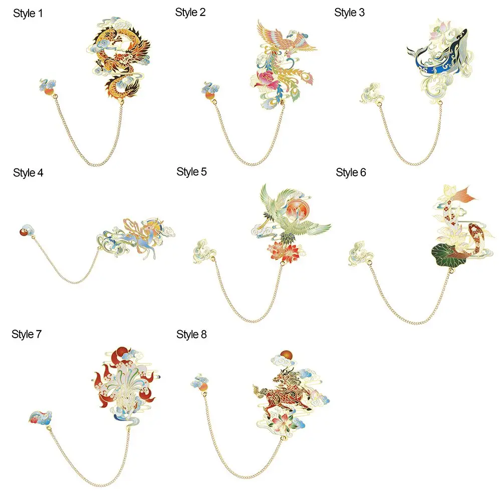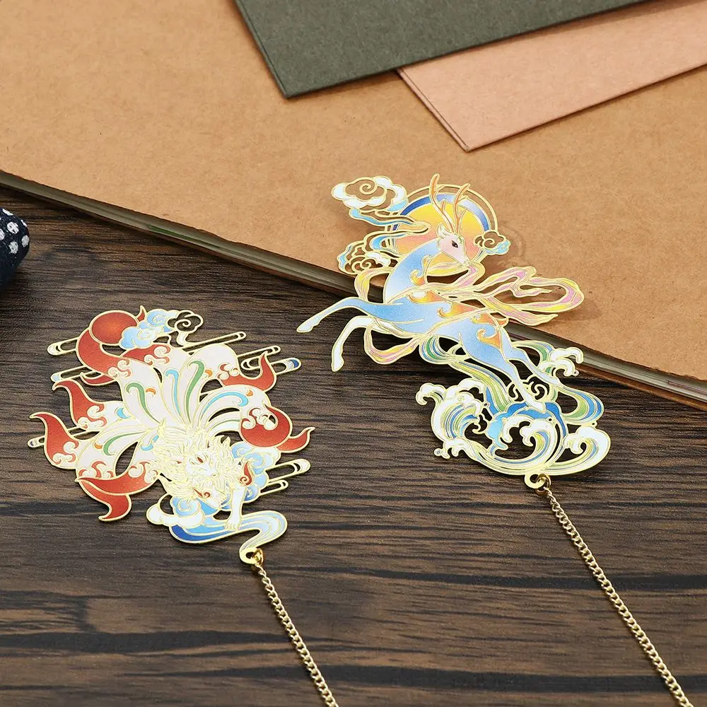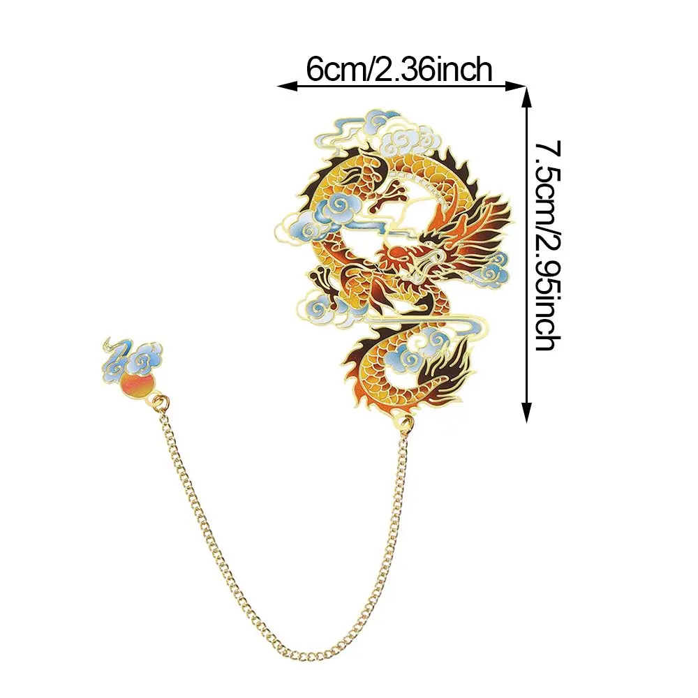 1Pc Dragon Design Brass Bookmark Chinese Style Retro Metal Book Clip Painted Pendant Pagination Mark School Office Supplies