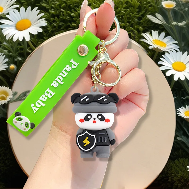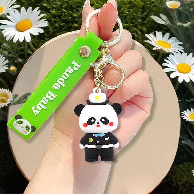 3D soft rubber cartoon cute little panda keychain figurine gift keychain manufacturer direct sales creative gift