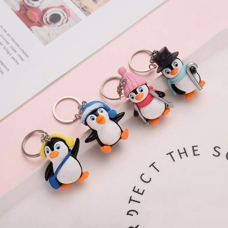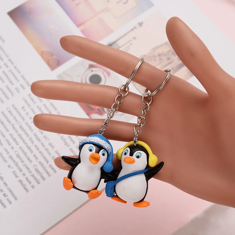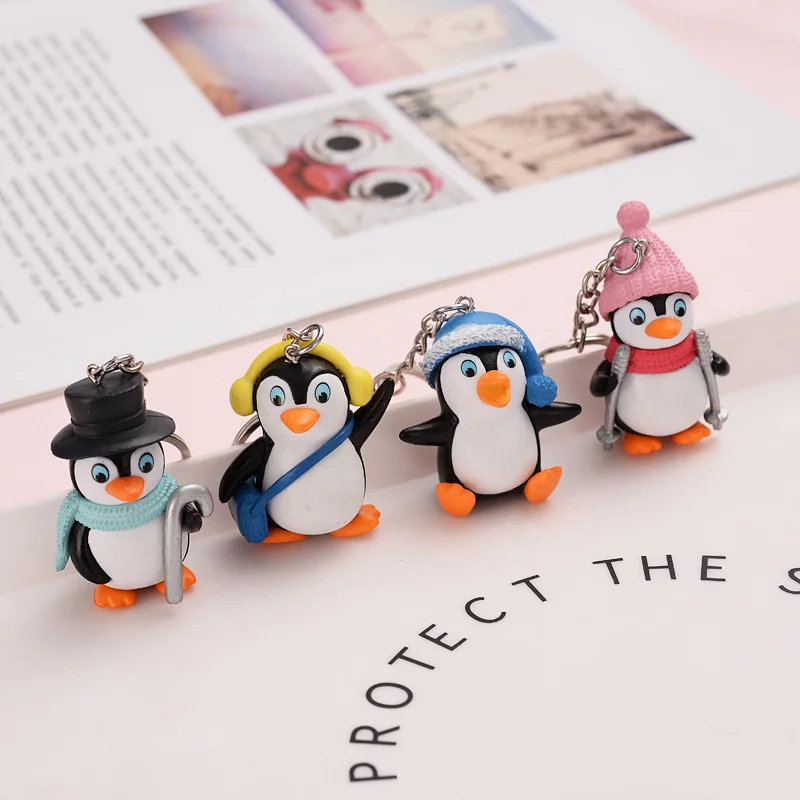 4pcs/lot Cute Penguin Keychain Cartoon Penguins Keychains Punk Style Animal Pendant Key Rings For Women Child Bag Keyring