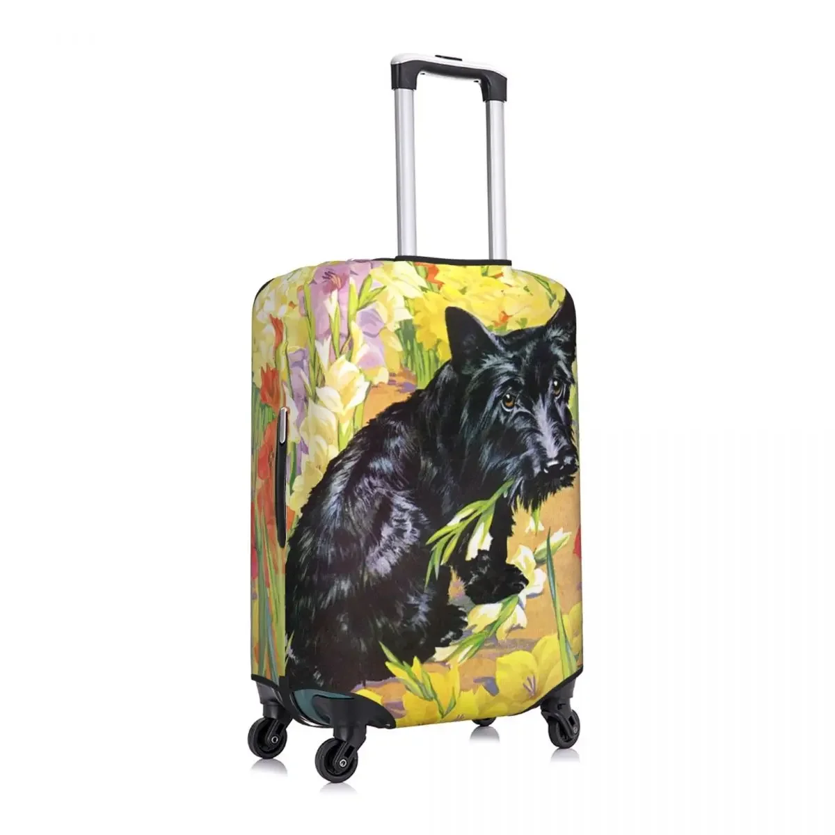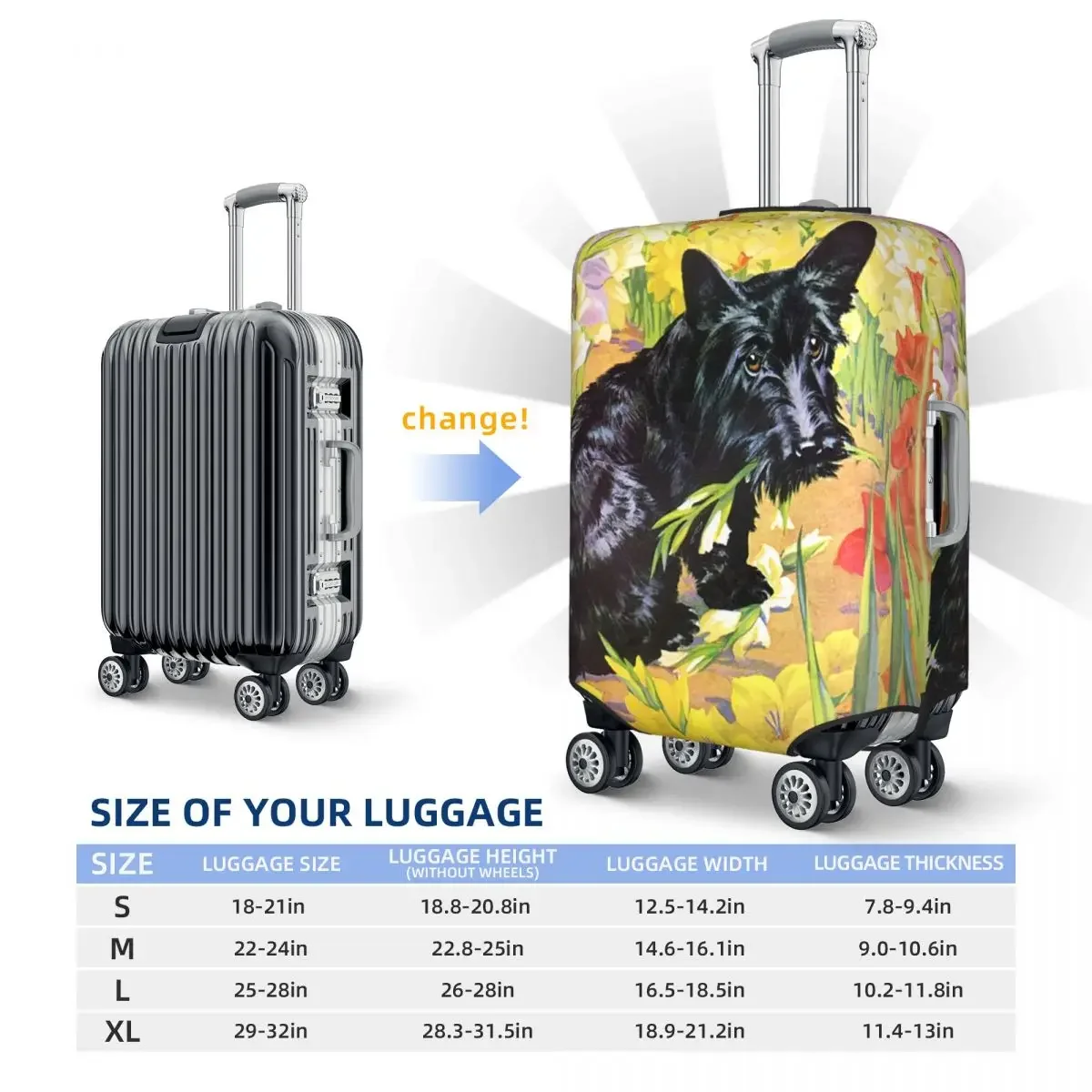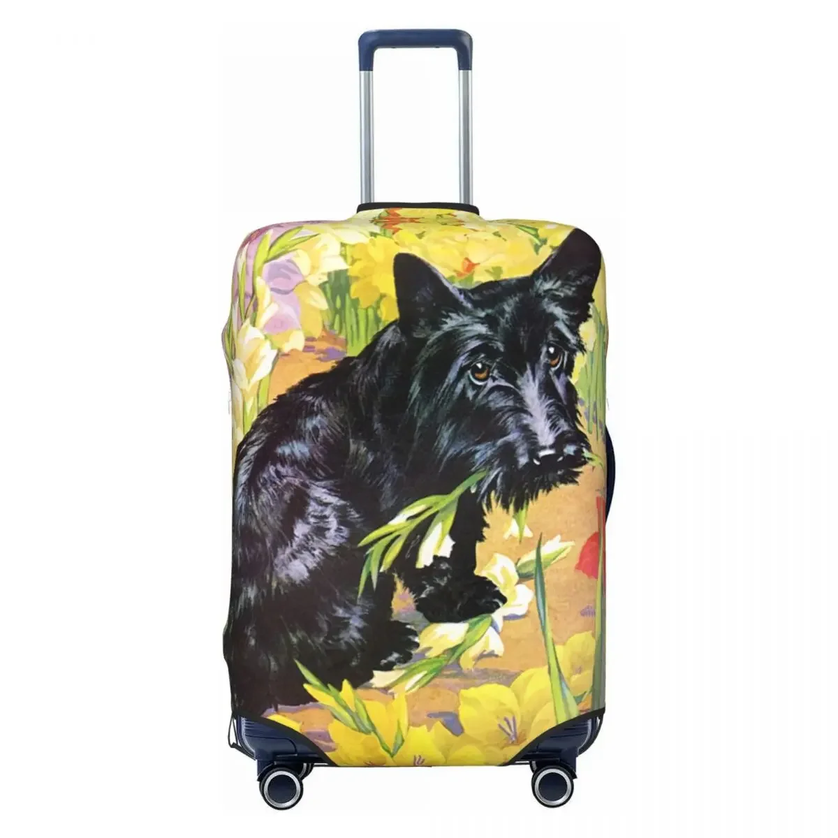 Custom Custom Vintage Pet Flower Scottish Terrier Dog Luggage Cover Protector Elastic Scottie Lover Travel Suitcase Covers