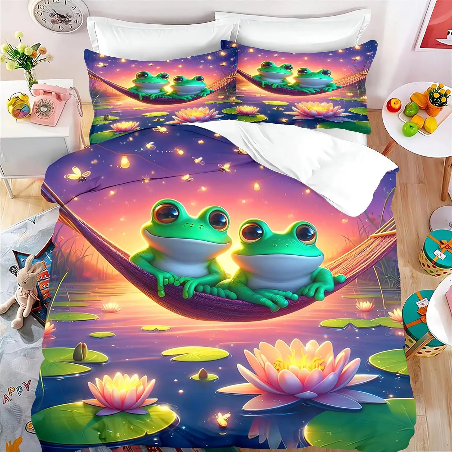 Frog Cute Beddings for Kids Boys Girls Teenage Single Duvet Cover, 3D Cartoon Frog Quilt Cover and Pillowcase 50×75cm 2 pcs