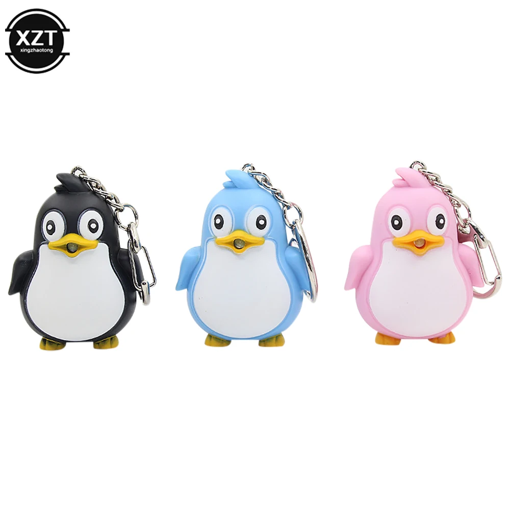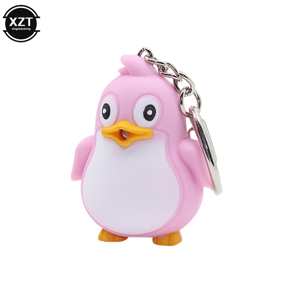 Kawaii Cute Cartoon Penguin Style Key Chain with LED Light Sound Key Chain Car Pendant Couple Backpack Hanger Car Interior 키링