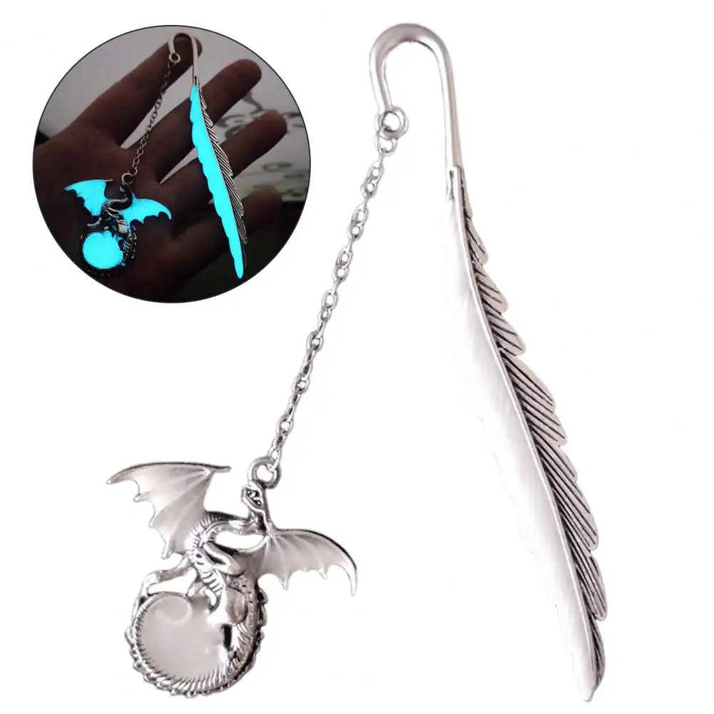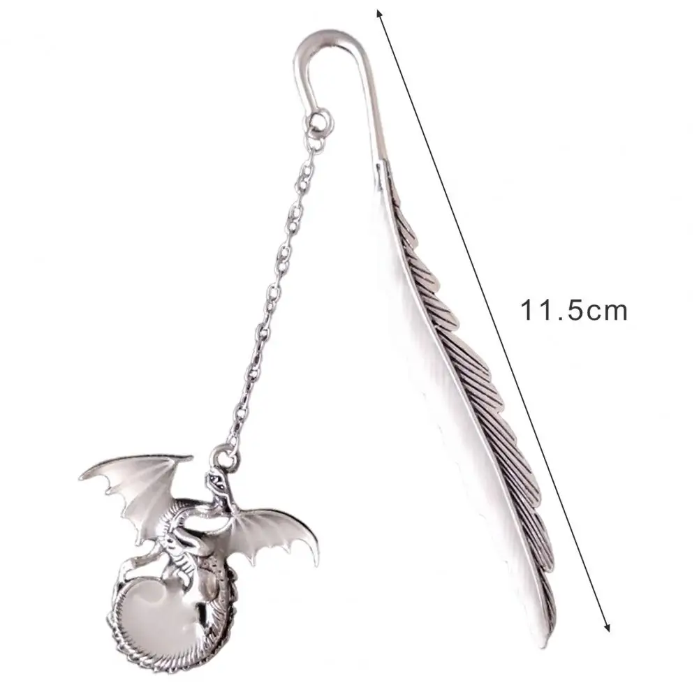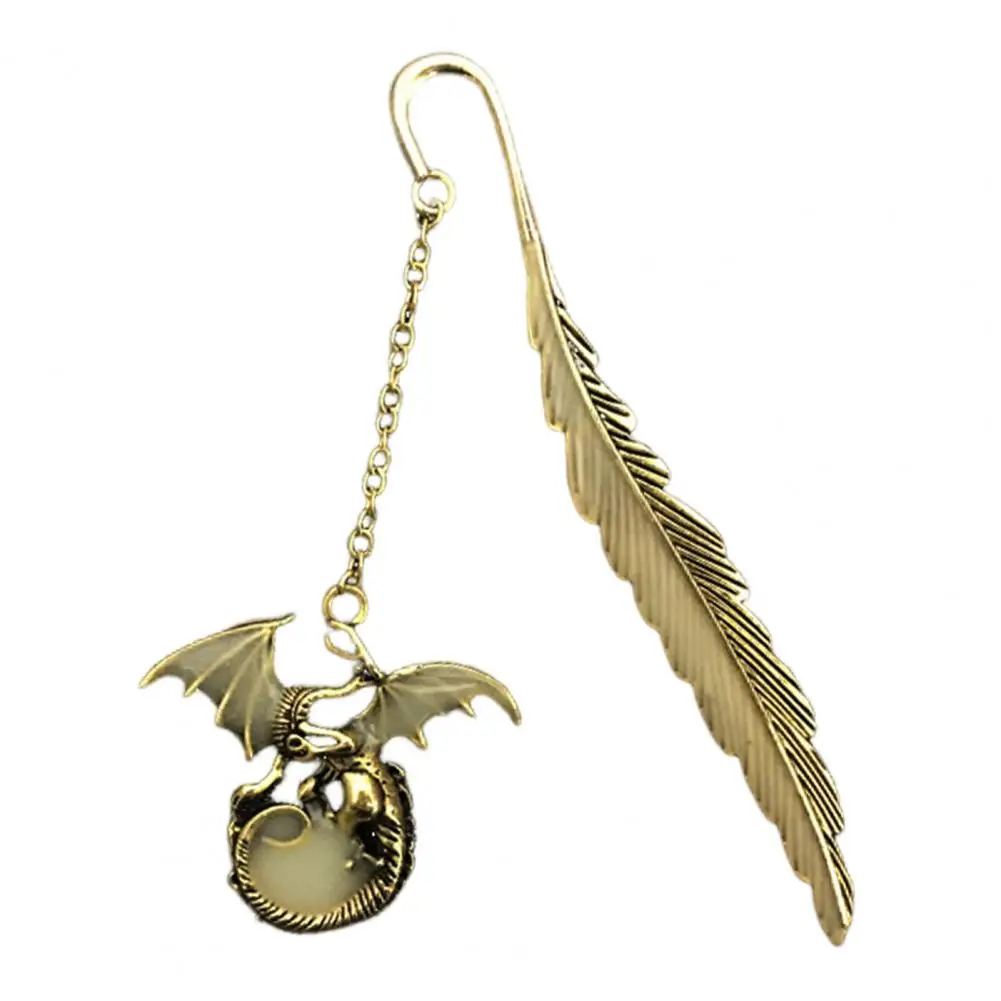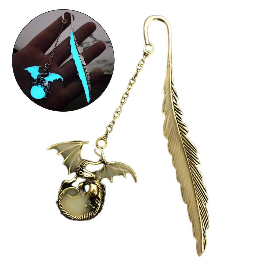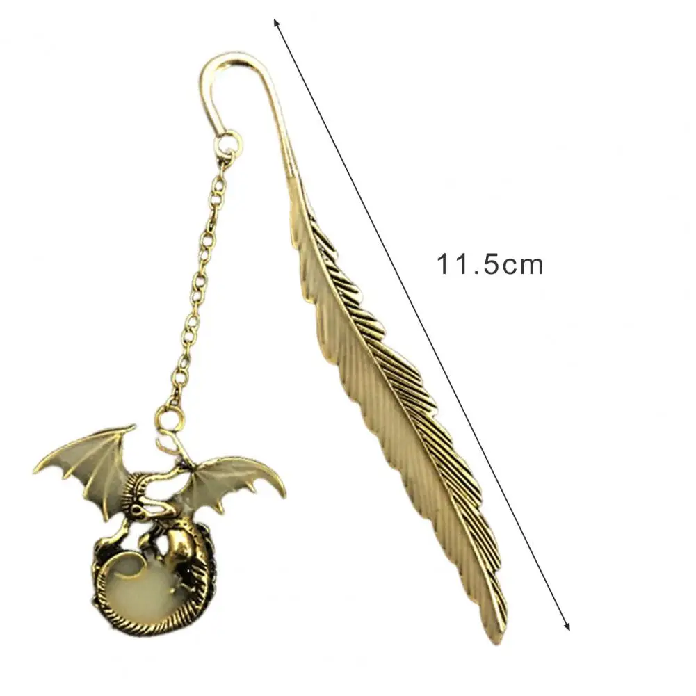 Vintage Metal Bookmarks Luminous Feather Design with Flying Dragon Bookmark Cute Animals Bookmark Pendant Stationery Supplies