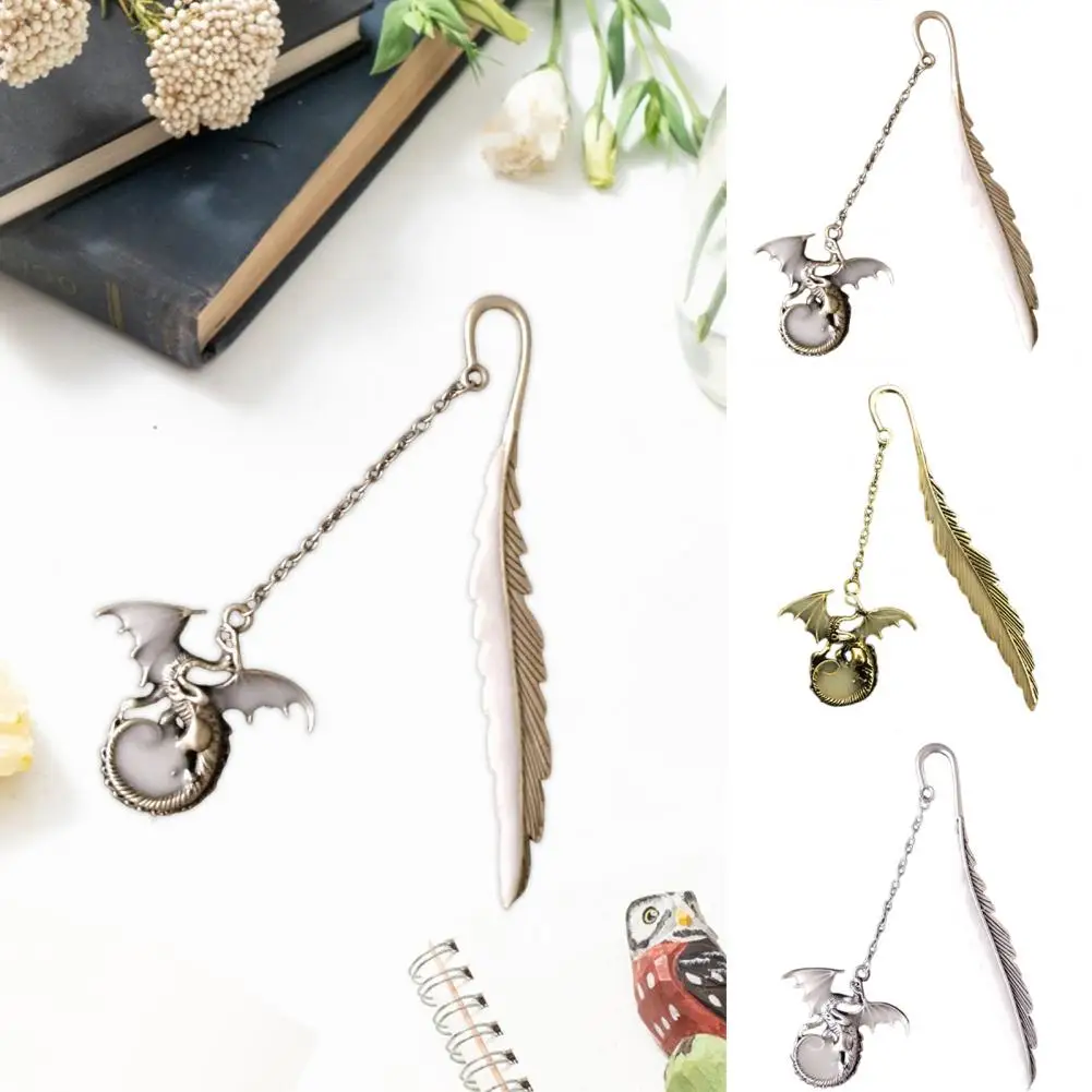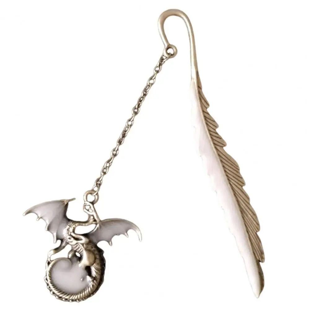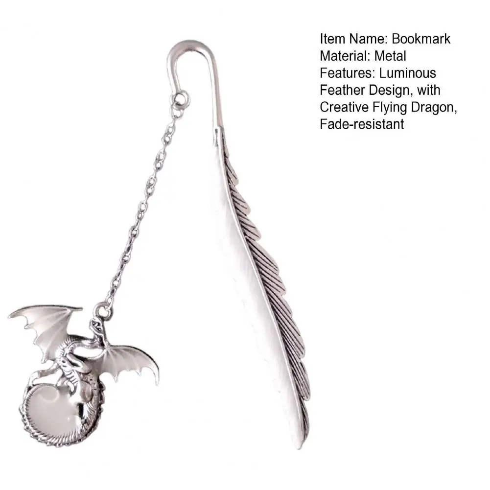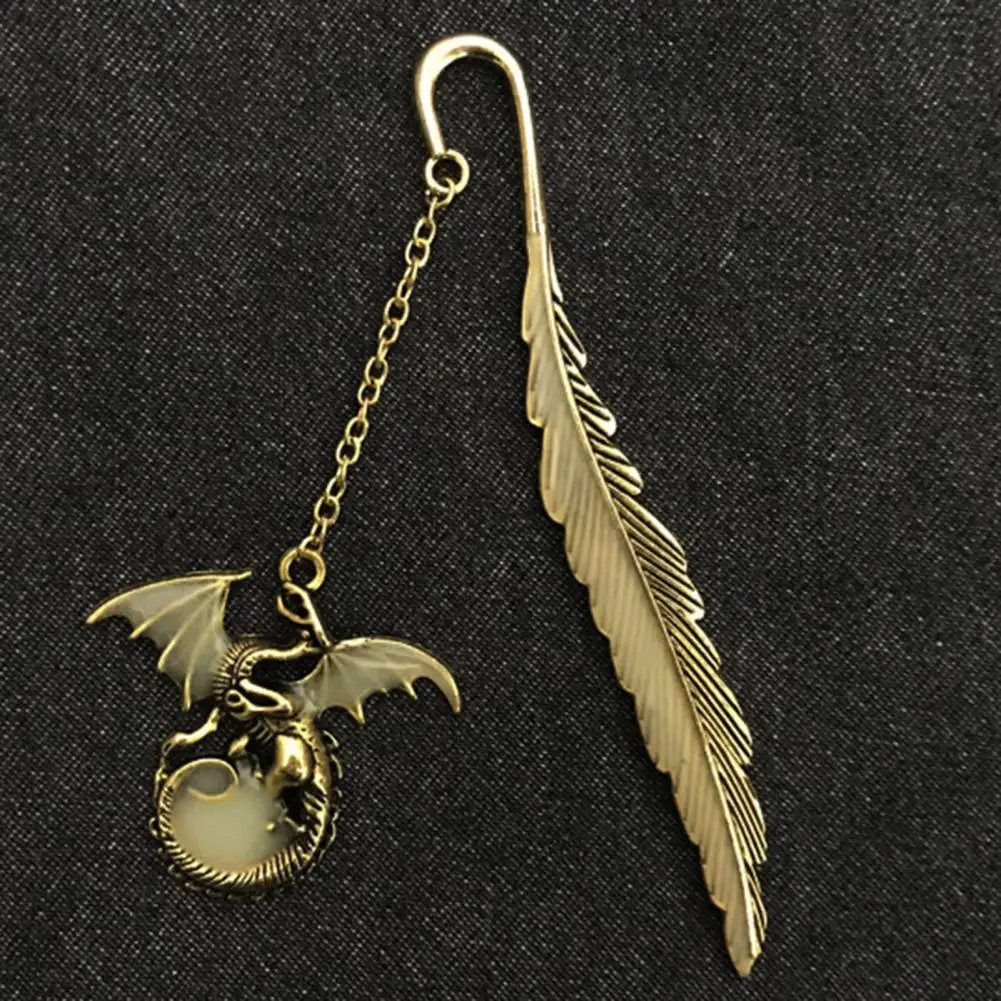 Vintage Metal Bookmarks Luminous Feather Design with Flying Dragon Bookmark Cute Animals Bookmark Pendant Stationery Supplies