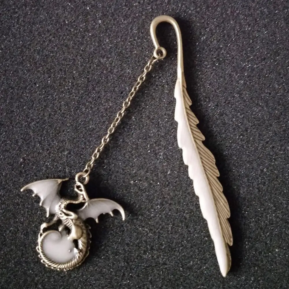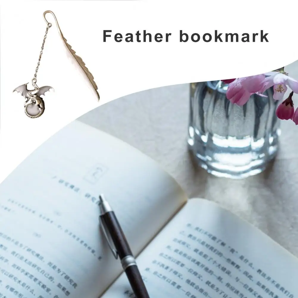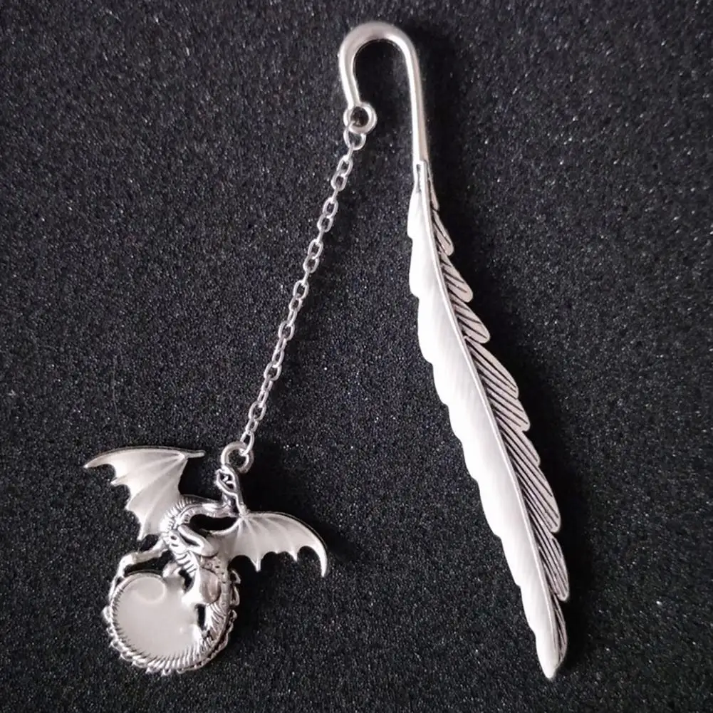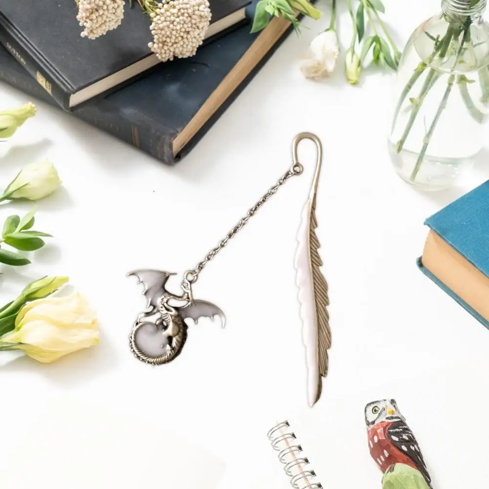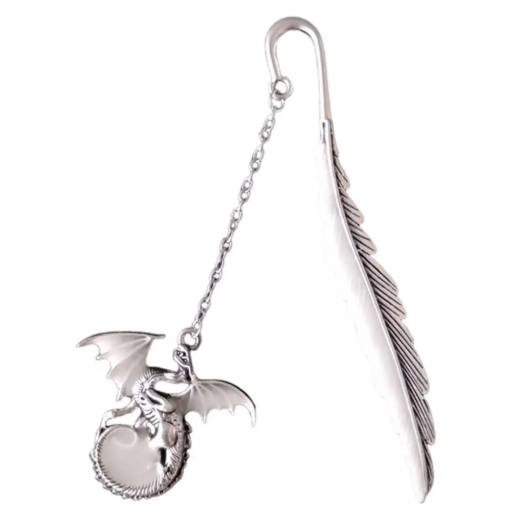 Vintage Metal Bookmarks Luminous Feather Design with Flying Dragon Bookmark Cute Animals Bookmark Pendant Stationery Supplies