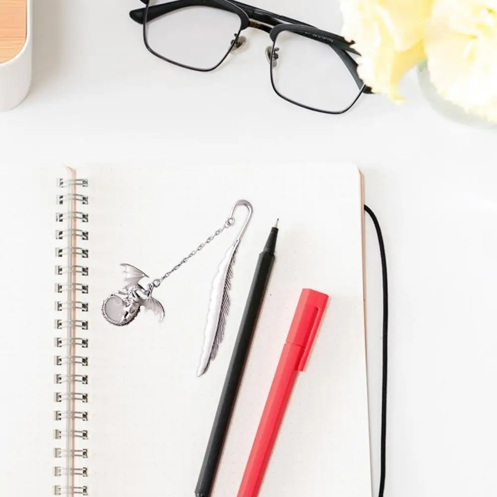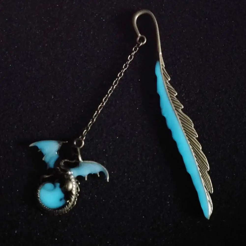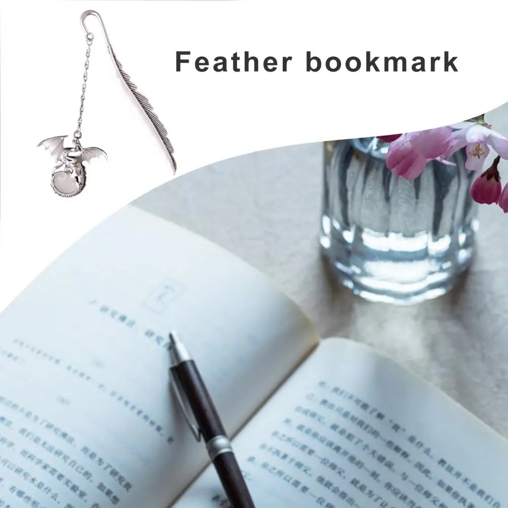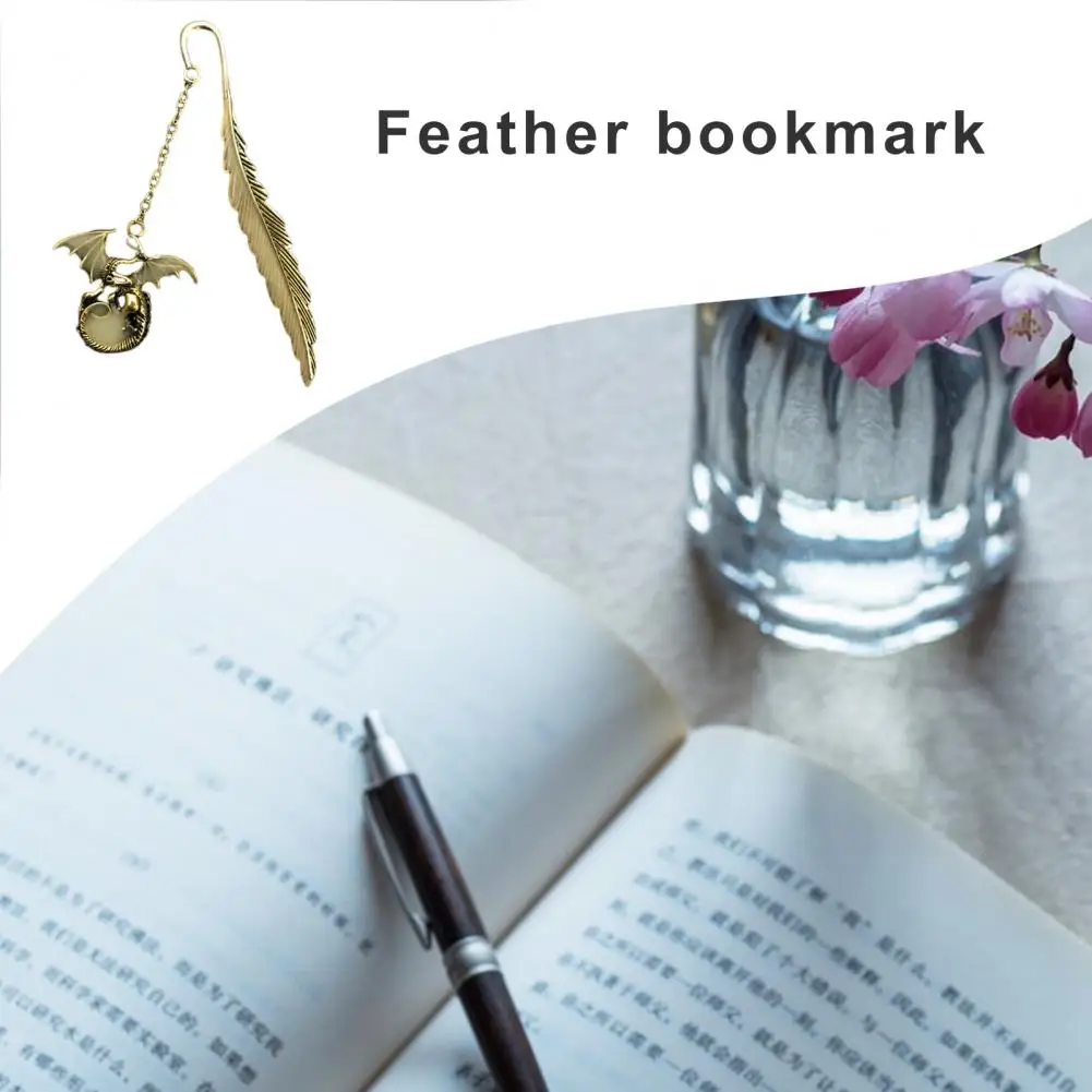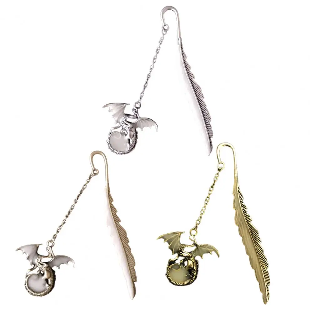 Vintage Metal Bookmarks Luminous Feather Design with Flying Dragon Bookmark Cute Animals Bookmark Pendant Stationery Supplies